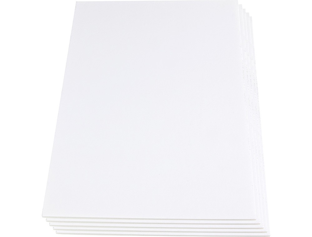 Combinado de espuma de poliuretano entre dos hojas de cartulina blanca. Ligero y rígido al mismo tiempo. Se corta fácil y nítidamente. Se puede doblar sin romperse, pintar, decorar y clavar en él. Aplicación: idóneo para maquetas, cajas, marcos, fijación de carteles, soporte de fotografías y obras de arte.