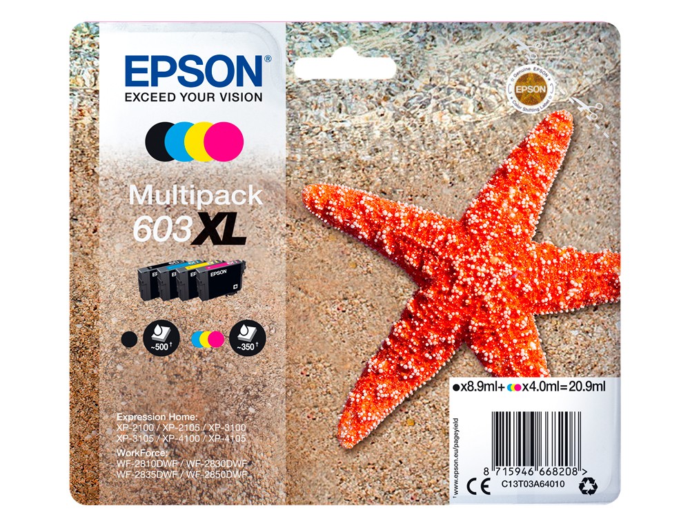 Ink-jet epson 603xl xp-2100 / 2105 / 3100 / 4100 / wf-2810 / 2830 / 2835 / 2850 multipack 4 colores negro