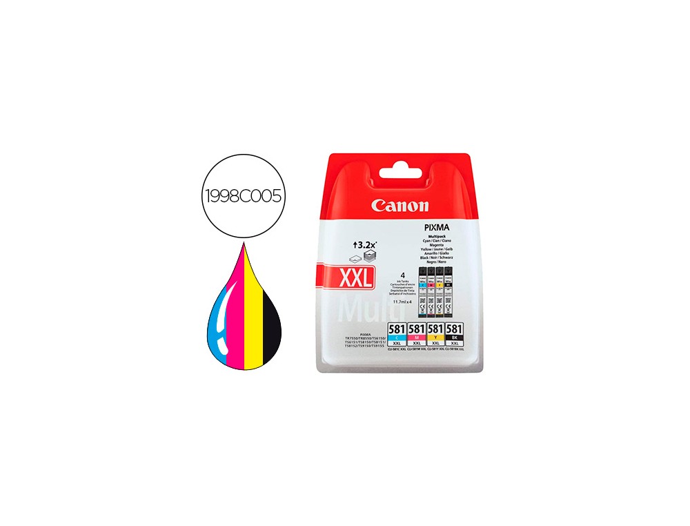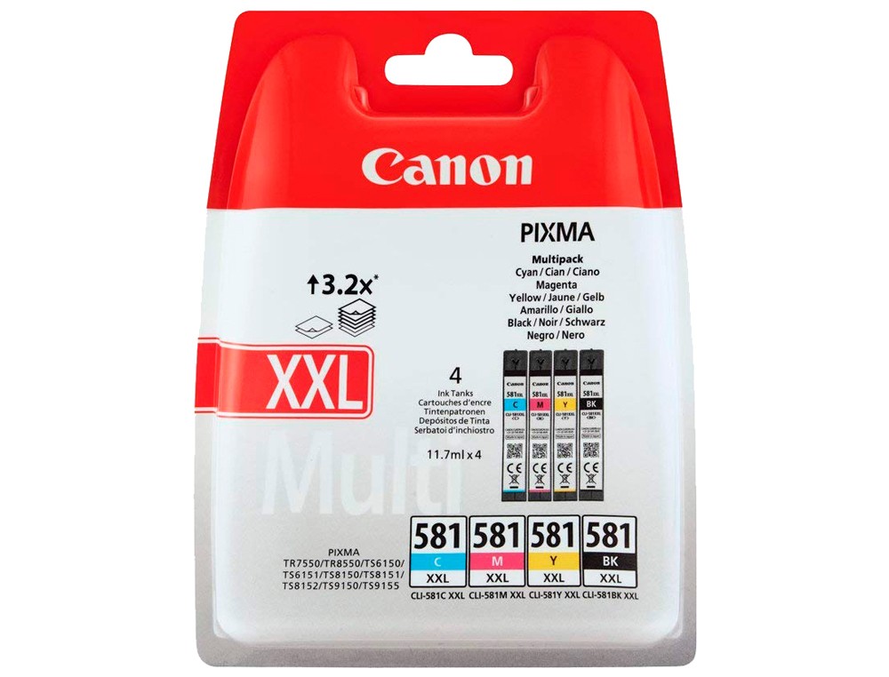 Ink jet canon pgi-580/cli-581 xxl pixma para ts6150 / ts8150 /tr7550 / tr8550 multipack negro amarillo cian