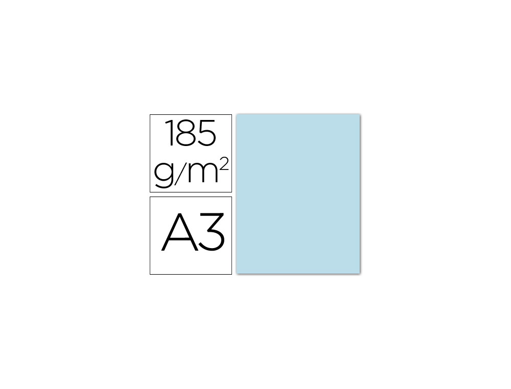 Cartulina guarro din a3 azul cielo 185 gr paquete 50 hojas