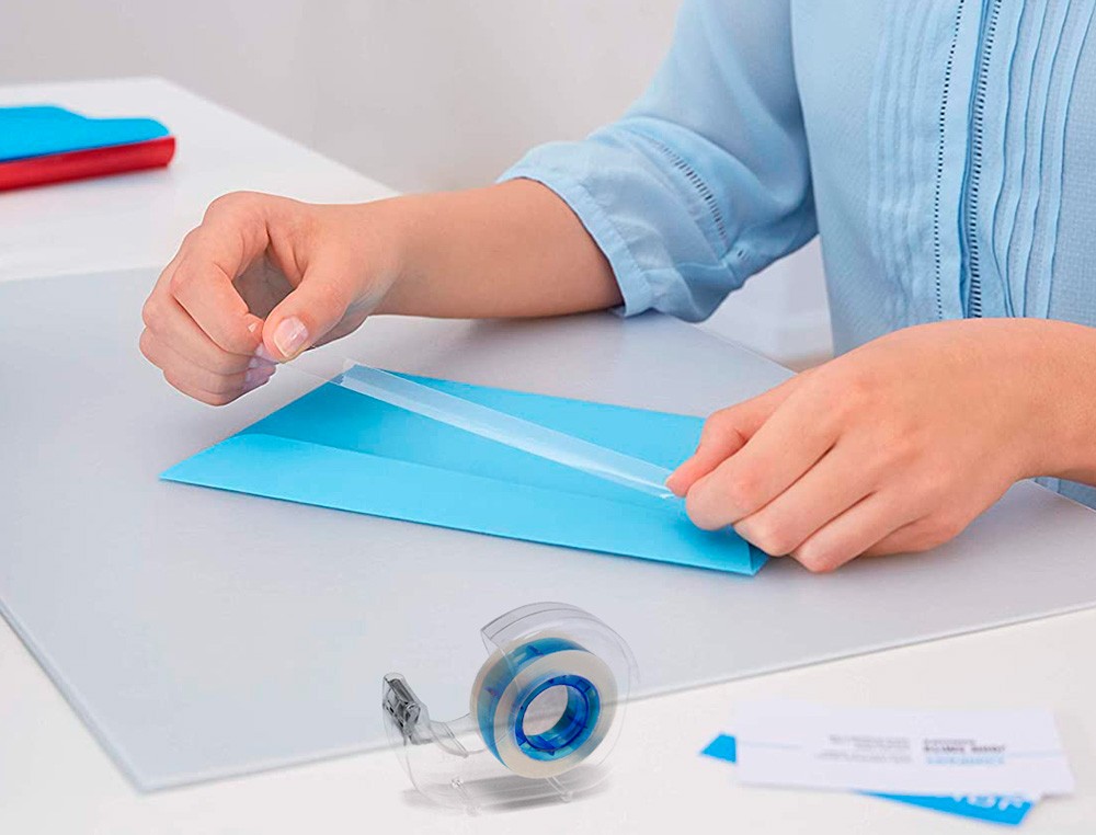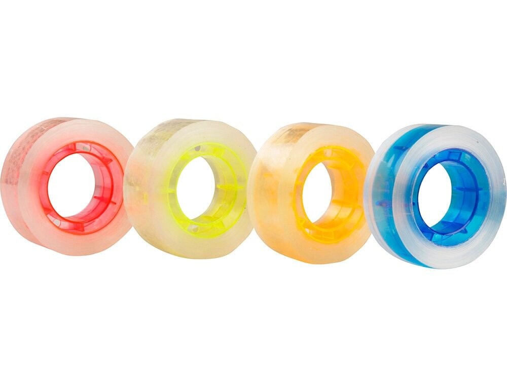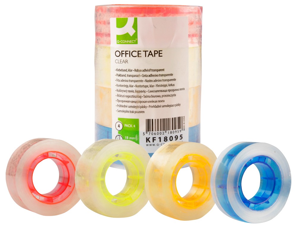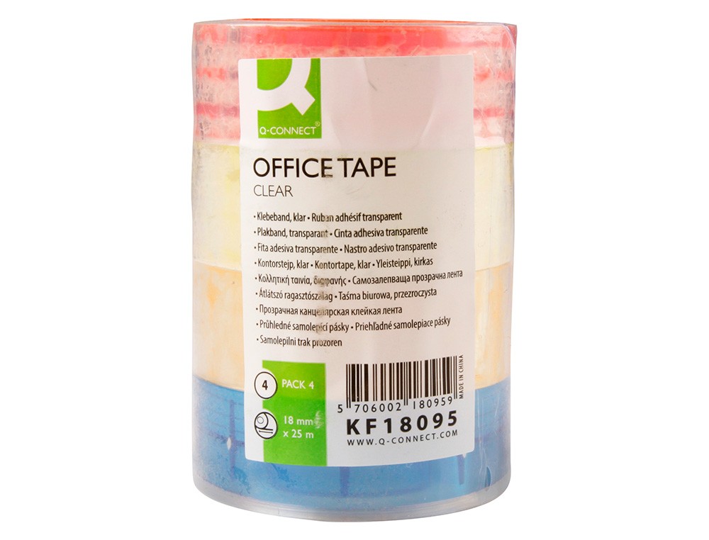 Cinta adhesiva q-connect transparente 25 mt x 18 mm con madril de color pack de 4 unidades