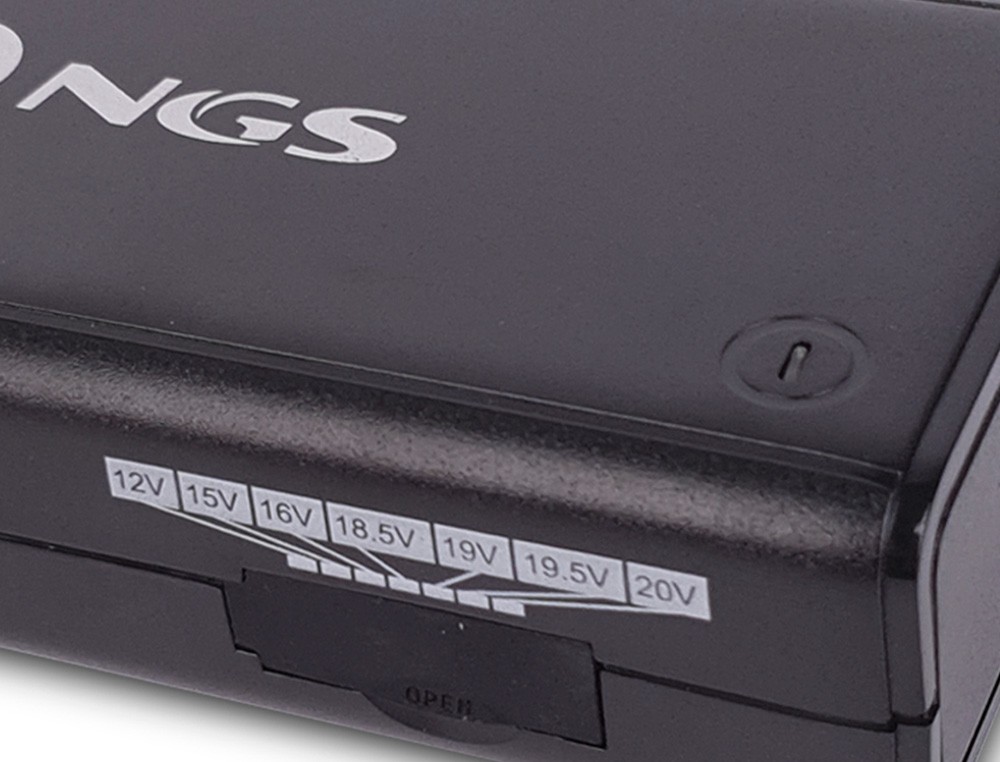 Práctico cargador universal compatible con la mayoría de los portátiles del mercado. Se trata de un cargador manual para ordenadores portátiles con potencias de hasta 90W. Incluye protección frente a sobrevoltaje, cortocircuito y sobrecalentamiento. Destaca por su diseño compacto, fácil de transportar y ocupa poco espacio, en definitiva, ideal para viajar, pero también es recomendable para su uso en casa, oficina, etc. Está equipado con un indicador LED que se ilumina cuando el cargador está conectado a la corriente eléctrica. NGS Ban posee además un selector de corriente con el que podrás elegir diferentes tensiones, en función de las necesidades de cada portátil (12-20 V). Por último, incluye once conectores intercambiablables que aseguran la compatibilidad con la mayoría de las marcas y dispositivos que existen en el mercado. Salidas: 12V-6A max, 15V-5A max, 16V-5A max, 18.5V-4.9A max, 19V-4.74A max, 19.5V-4.62A max, 20V-4.5A max
