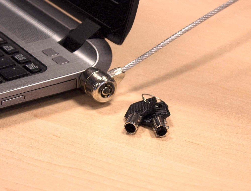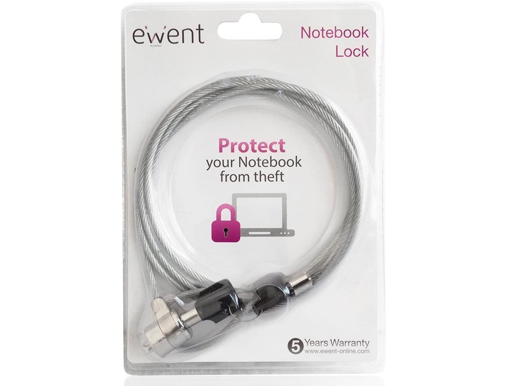 ¡Proteja su ordenador portátil contra robos! Universal y fácil de usar con cualquier portátil y escritorio con la ranura de seguridad integrada Incluye 2 llaves. Ideal para utilizarlo tanto en la oficina como en zonas públicas Dispositivo de bloqueo resistente con un cable de acero de 1,5 m