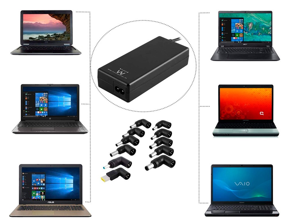 Cargador ewent automatico pequeño de notebook de 90 w 11 tips