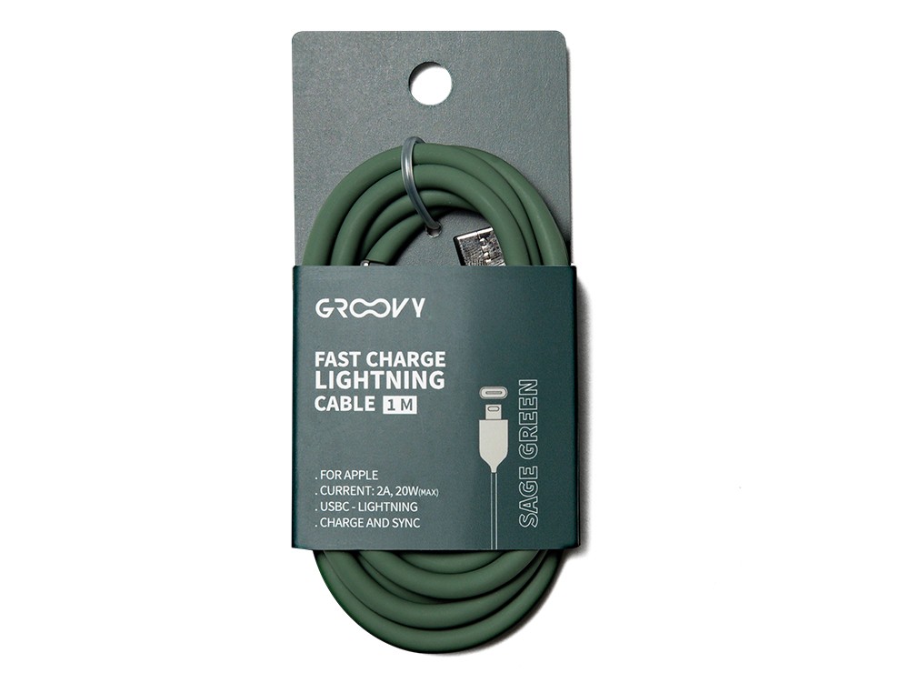 Cable groovy usb 2.0 tipo c a tipo c longitud 1 m silicona color verde salvia