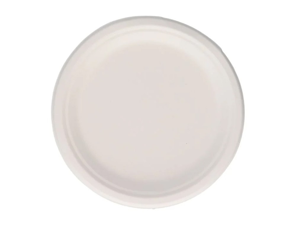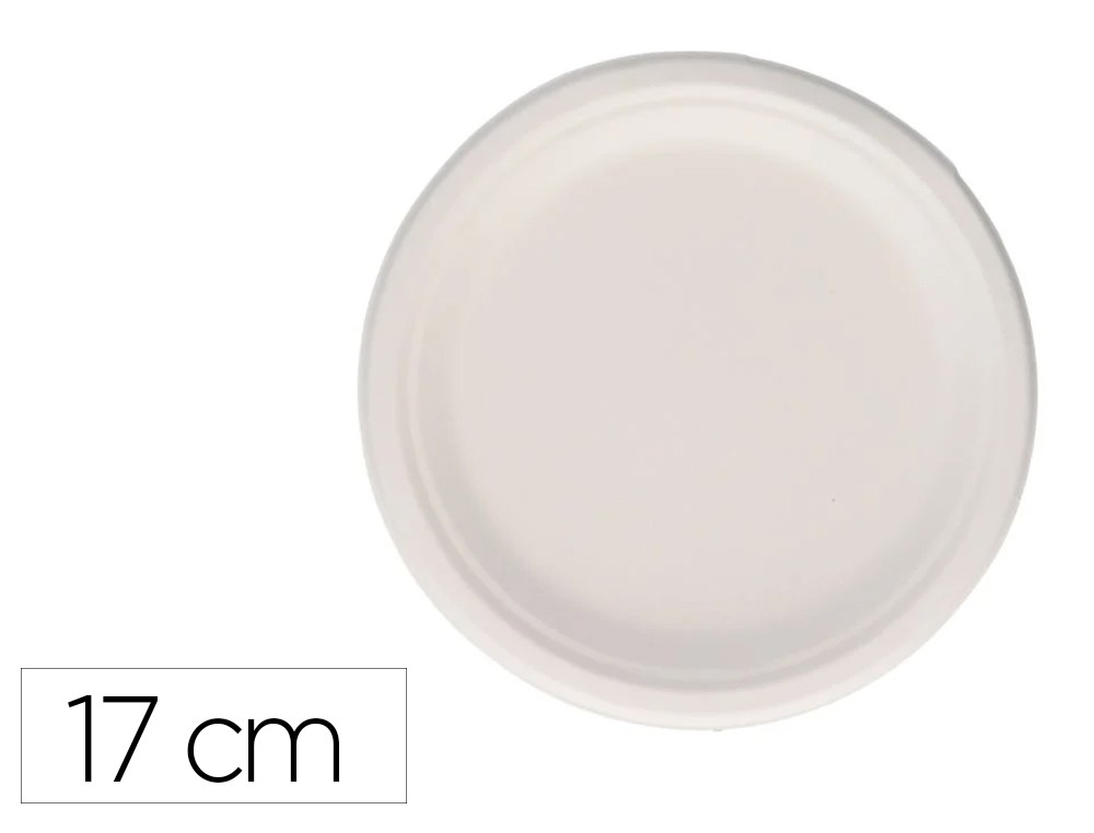 Plato fibra caña azucar bunzl biodegradable 17 cm pack de 50apto alimentos frios y calientes color blanco