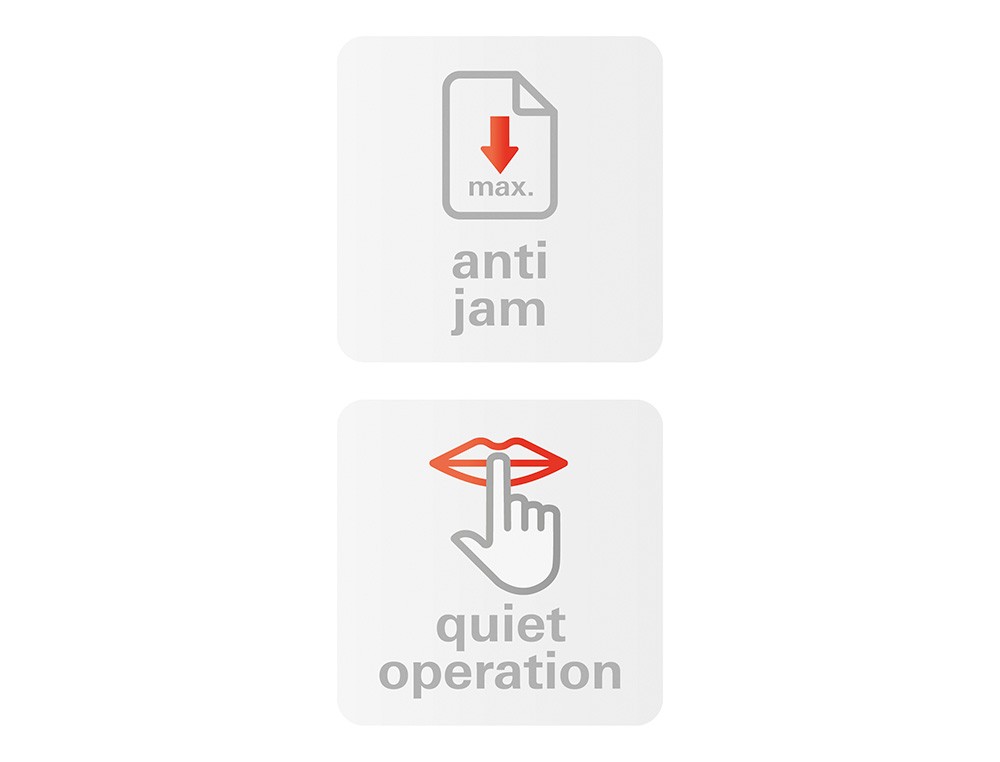 Moderna, silenciosa y compacta, es ideal para su uso personal en el hogar o pequeñas oficinas. Capacidad de corte: 5 hojas en partículas de 4,5 x 30 mm. Nivel de seguridad P-4. Papelera de 18 litros. Destruye grapas, CD, clips y tarjetas de crédito. Mecanismo de corte independiente para CD con un recipiente de recogida que elimina el material por tipos. Indicador LED y de nivel. Inicio/paro automático con célula fotoeléctrica. Vaciado fácil. Ancho de entrada: 220 mm. Medidas: 345 x 385 x 245 mm. Peso: 4,2 kg.