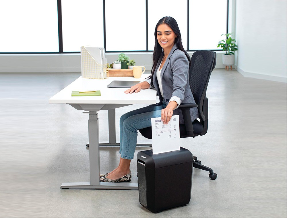Capacidad de corte: 10 hojas. Corte en partículas de 4 x 40 mm. Nivel de seguridad P-4. Bloqueo de seguridad para evitar accidentes. Destruye de manera continua durante 6 minutos con un tiempo de enfriamiento de 20 minutos. Destruye grapas, clips y tarjetas de crédito. Papelera con capacidad para 22 litros. Medidas: 407 x 233 x 371 mm. Peso: 5,3 kg.