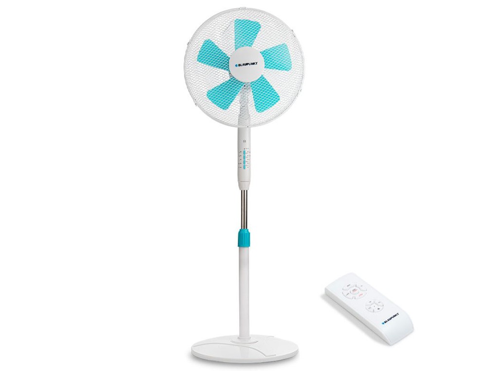 Ventilador blaupunkt pie base redonda 5 aspas 3 velocidades altura regulable con mando distancia+temporizador 45w