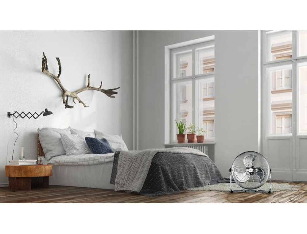 Ventilador para suelo. 3 Velocidades. Ponga el ventilador en el suelo, enchúfelo en una toma de corriente y empiece a disfrutar del aire fresco al momento. Su diseño para el suelo con pies antideslizantes, hace que el ventilador de suelo sea perfecto para todo tipo de espacios: viviendas, comercios, oficinas. Gradúe la fuerza del aire en función de su necesidad. Use la fuerza máxima para momentos muy calurosos y sentirá la temperatura reducida al instante. Utilice la fuerza media para momentos menos calurosos o para mantener una temperatura constante. Potencia 90W. Tamaño: 40 cm. Equilibrio perfecto entre tamaño y potencia. Encienda el ventilador y disfrute de aire fresco de manera instantanea. Los materiales usados hacen que el ventilador no haga ruido cuando está en movimiento. Puede usarlo mientras duerme que no notará la presencia del ventilador. Válido tanto para uso doméstico como uso profesional.
