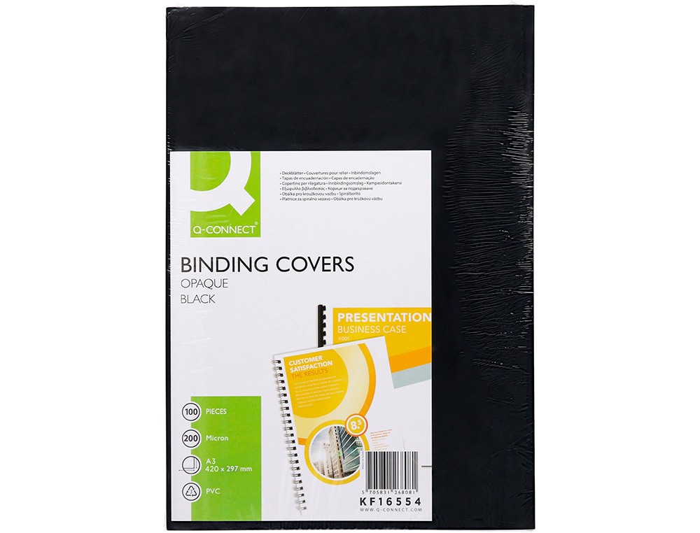 Tapa de encuadernacion q-connect pvc din a3 opaca negra 200 mc caja de 100 unidades