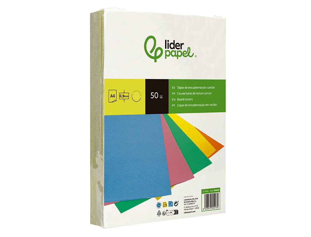 Tapa encuadernacion liderpapel carton a4 0,9mm amarillo fluor paquete de 50 unidades