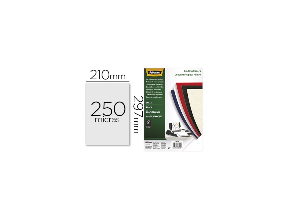 Tapa de encuadernacion fellowes din a4 carton similpiel cuero negro delta 250 gr pack de 100 unidades