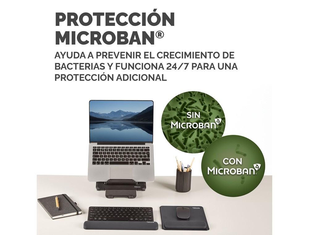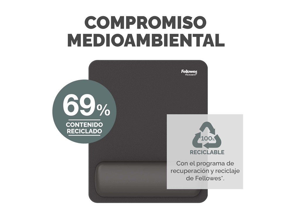 Reposamuñecas para ratón fabricados en tecnología patentada HEX Cushion Almohadilla hexagonal que proporciona comfort y apoyo para aliviar el dolor y las molestias al utilizar el ratón durante mucho tiempo. Fabricado en materiales con contenido 60% reciclado post-consumo y 100% reciclable. Protección antibacterias Microban® integrada ayuda a evitar la proliferación debacterias para un nivel adicional de protección del producto.Certificada por FIRA International Ltd para cumplir los requisitos ergonómicos establecidos en la EN ISO 9241-5. Garantía extendida de 5 años. Medidas 20 x 24 x13 cm.