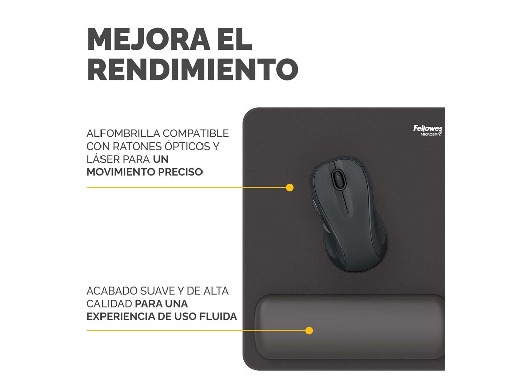 Alfombrilla para raton fellowes con reposamuñecas breyta negro 250x210x25 mm