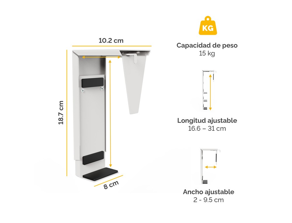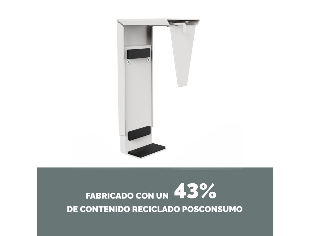 Soporte para CPU Thin Client maximiza el espacio de trabajo y lo mantiene despejado. Fácil de colocar debajo del escritorio. Anchura regulable de 20a 95 mm y un largo ajustables de 16,6 a 31 cm. lo que permite acomodar la mayoría de Thin client y CPUs pequeñas. El diseño de marco abierto mejora el flujo de aire y facilita el acceso a los puertos. Soporta hasta 15 kg de peso. Fabricado con un 43% de contenido reciclado. Garantía extendida de 5 años.