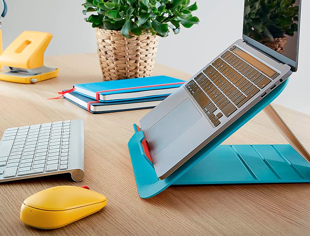 El elevador Leitz Ergo Cosy para portátil eleva la pantalla de tu ordenador portátil para aumentar tu comodidad de visualización y ayudar a mejorar la postura. El uso de un elevador para portátiles también favorece el flujo de aire, manteniendo la batería del portátil y otros componentes frescospara mantener altos niveles de rendimiento. Con su diseño minimalista y s us colores de acabado mate, este elegante soporte para portátiles mejorarála salud y el bienestar creando sin esfuerzo la configuración perfecta pa ra el trabajo activo. Combínalo con otros productos Leitz Ergo para crear un espacio de trabajo acogedor y flexible que te mantenga en movimiento todo el día.