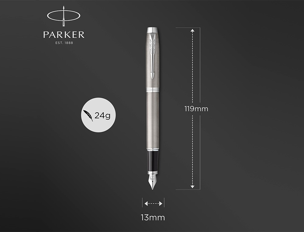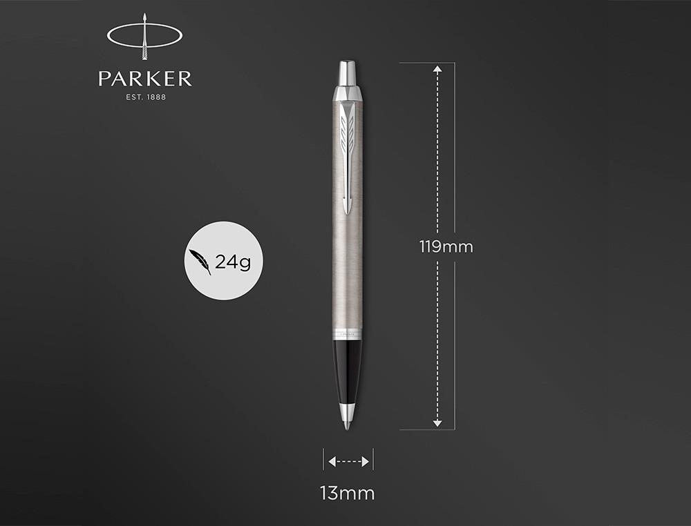 El dúo Parker IM, que contiene un bolígrafo y una pluma estilográfica de acero inoxidable con detalles cromados y un estuche de regalo de la marca Parker, es el regalo perfecto para jóvenes profesionales. Refinado a la parque profesional, es un compañero perfecto con un potencial ilimitado. Su elegante forma estilizada combina a la perfección con sus innovadores diseños para acaparar todas las miradas. Los detalles cromados de intenso brillo complementan el cuerpo de acero inoxidable, para convertir este modelo Parker en el instrumento de escritura perfecto tanto para estudiantes comopara profesionales. Con un perfecto mecanismo retráctil, la punta de bolí grafo y la tinta QuinkFlow garantizan una experiencia de escritura increíbeíblemente fluida y fiable, y son compatibles con los recambios de tinta de bolígrafo y de gel Parker Quink. La pluma estilográfica tiene un plumín medio de acero inoxidable e incluye un cartucho largo azul Quink para una a de escritura sofisticada. Cada detal