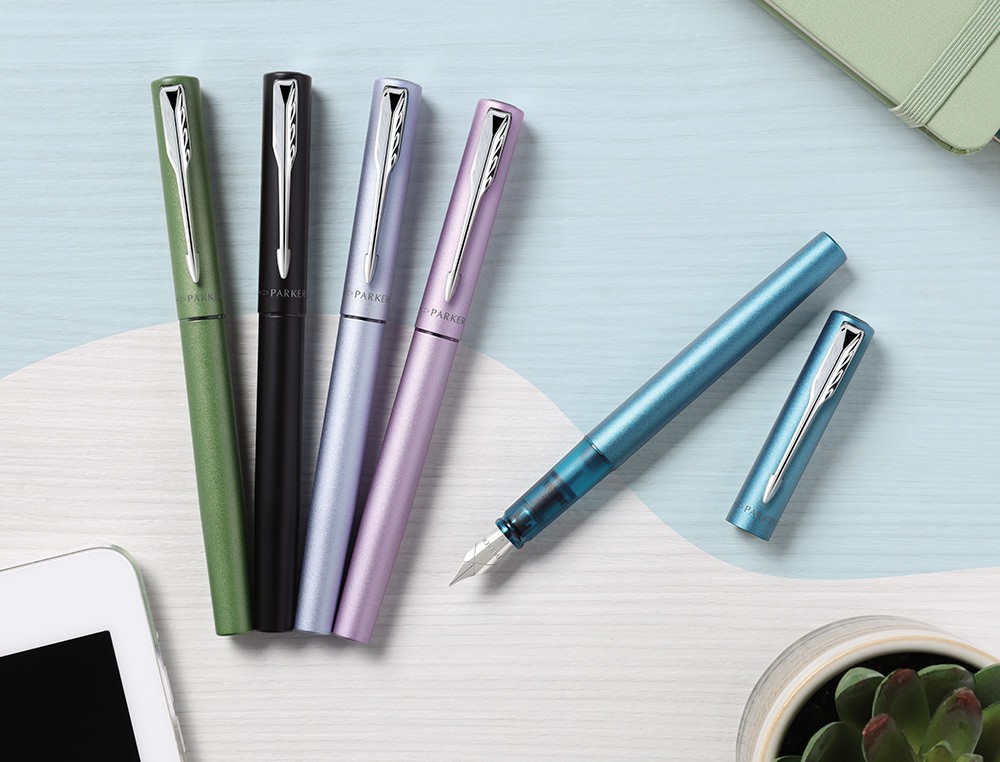 Expositor de sobremesa 20 Plumas Vector XL surtidas. La nueva colección Vector XL es perfecta para las nuevas generaciones y supone un giro de 360 grados respecto al tradicional Vector. Su cuerpo y capuchón son metálicos. Su ancho es mayor que el de Vector, otorgándole una silueta de mayor presencia a la vez que equilibrada, y una escritura confortable. Presenta el logo de Parker grabado en el capuchón y el clip en forma de flecha de Parker. Está disponible en nuevos atractivos colores de tendencia, como el Negro, el Verde, el Azul Teal, el Lila y el Azul Plateado, con un bonito efectomate. Su exclusivo plumín de acero inoxidable es de tamaño generoso, ofre ciendo al mismo tiempo un diseño ligero y algo estilizado, con el logo de de Parker y un motivo grabados. Las plumas Vector XL presentan una preciosa boquilla de plástico resistente, del mismo color que la pieza pero transparente, que muestra el funcionamiento interno de la pieza. La colección sobre todo a estudiantes y jóvenes prof