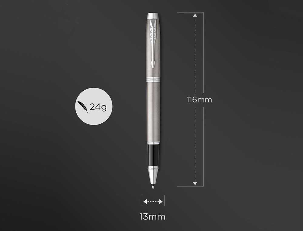 La gran familia IM de Parker se caracteriza por su diseño sobrio y su excelente relación calidad-precio, siendo una colección de plumas, rollers y bolígrafos fiables, cuidados en cada detalle e ideales para su uso diario. Con las nuevas IM Essential, Parker añade a la familia IM dos acabados, hechos con los mismos materiales y siguiendo los mismos estándares de calidad de Parker IM, pero con un precio más asequible. IM Essential es el puntode entrada en el universo de Parker IM. Este roller moderno, con una rela ción calidad-precio imbatible, es al mismo tiempo refinado, elegante y profesional. Cuerpo y capuchón lacados en color negro con efecto mate, clip yadornos brillantes de acero inoxidable cromado, empuñadura negra brillant ante. Utilizar un roller garantiza un flujo de tinta constante sobre el papel y una experiencia de escritura especialmente suave y confortable. Se entrega en un estuche regalo de Parker e incluye un recambio para roller deue ofrece un rendimiento óptimo en la