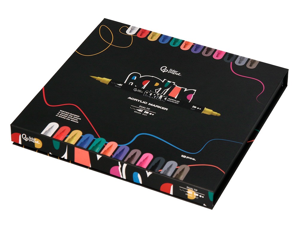 Rotulador liderpapel acrylic base agua todo tipo de superficie doble punta pincel y dot caja de 12 unidades surtidas