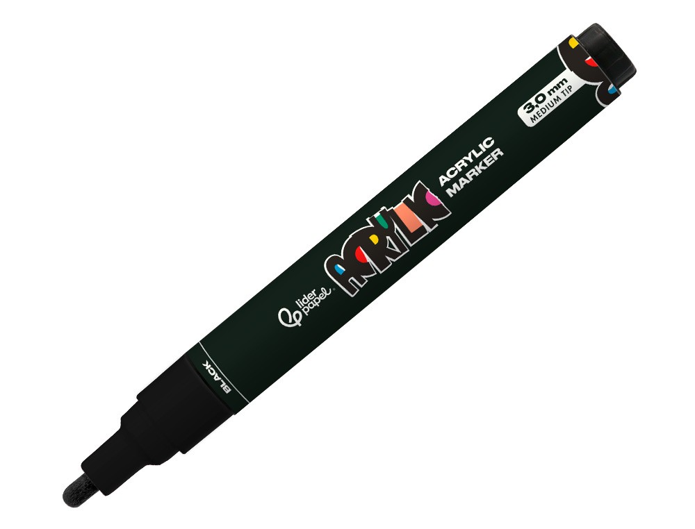 Rotulador liderpapel acrylic base agua todo tipo de superficie punta redonda 3 mm negro