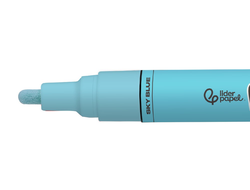 Los Rotuladores Liderpapel Acrylic ofrecen una experiencia de escritura y dibujo excepcional para artistas, estudiantes y profesionales creativos por igual. Con base de agua, estos rotuladores son versátiles y pueden utilizarse en una amplia variedad de superficies, papel, cartón, madera, metal,plástico, vídrio, cerámica, tela y más. La punta media de 3 mm. permite c ubrir más fácilmente la superficie. Ya sea que estés ilustrando, diseñandocarteles, creando tarjetas de felicitación o personalizando objetos, los Rotuladores Liderpapel Acrylic son la elección perfecta para expresar tu creatividad y estilo en cualquier superficie. Color Azul Cielo