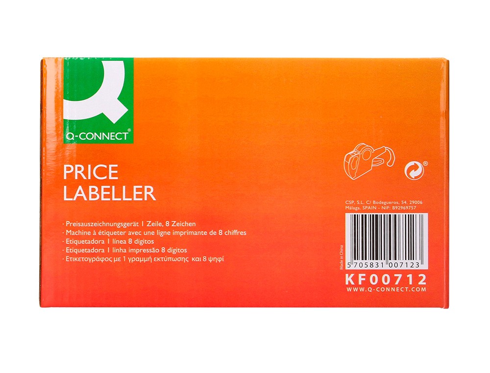Máquina etiquetadora de una línea y 8 dígitos. Útil para marcar sus productos. Sistema de apertura en un toque. No incluye etiquetas. Medidas: 225 x 135 x 40 mm. Peso: 300 g.