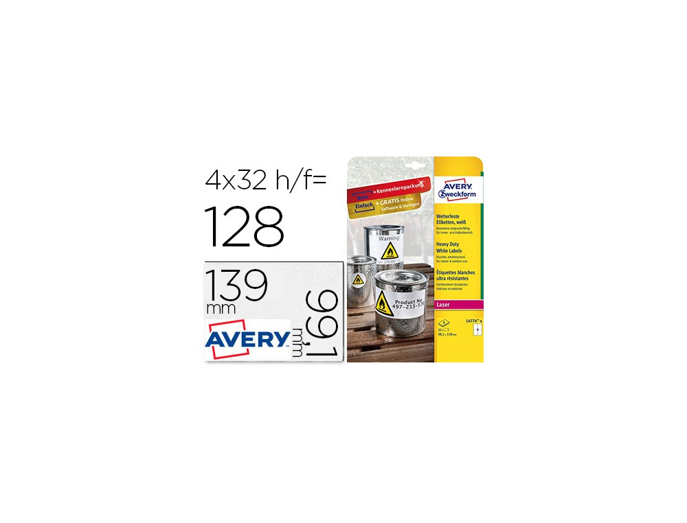 Etiqueta adhesiva resistente avery poliester blanco 99,1x139 mm para impresora laser pack de 32 unidades
