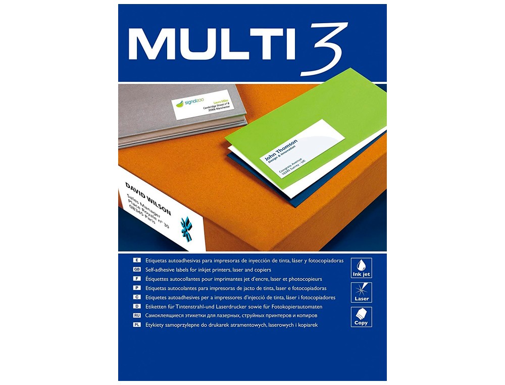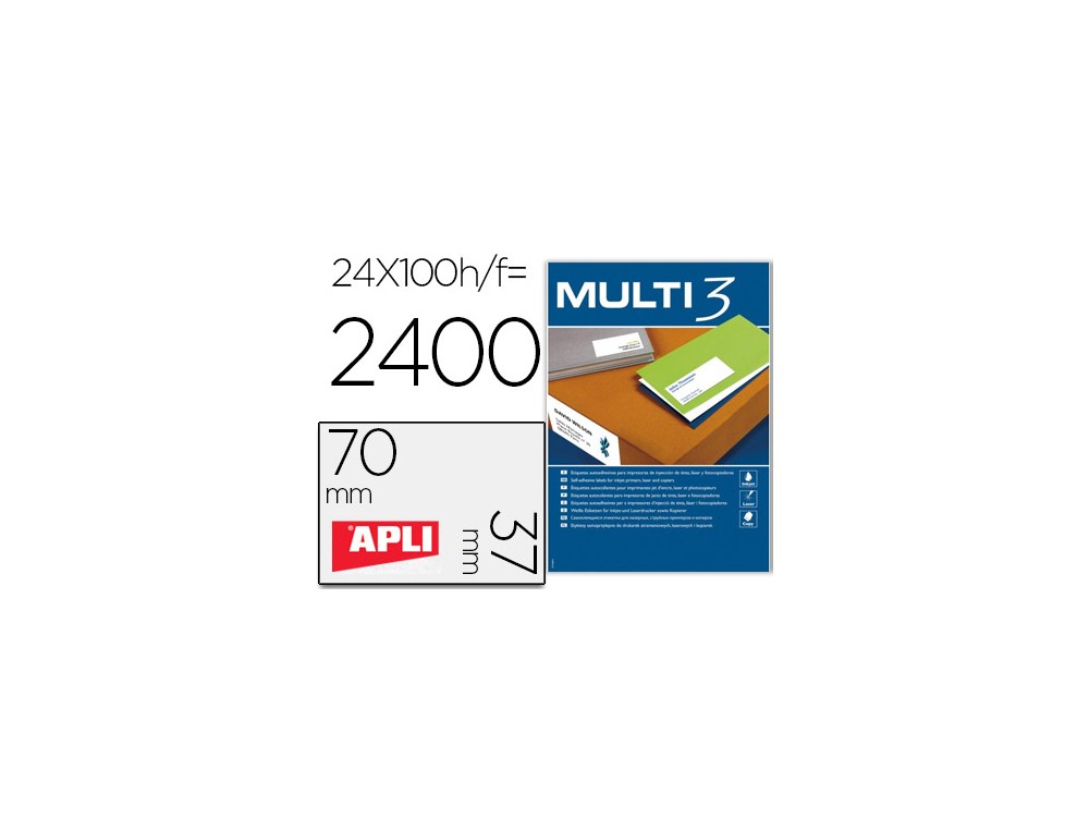 Etiqueta adhesiva multi 3 apli 70x37 mm fotocopiadora laser ink-jet caja con 100 hojas din a4