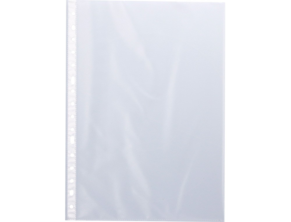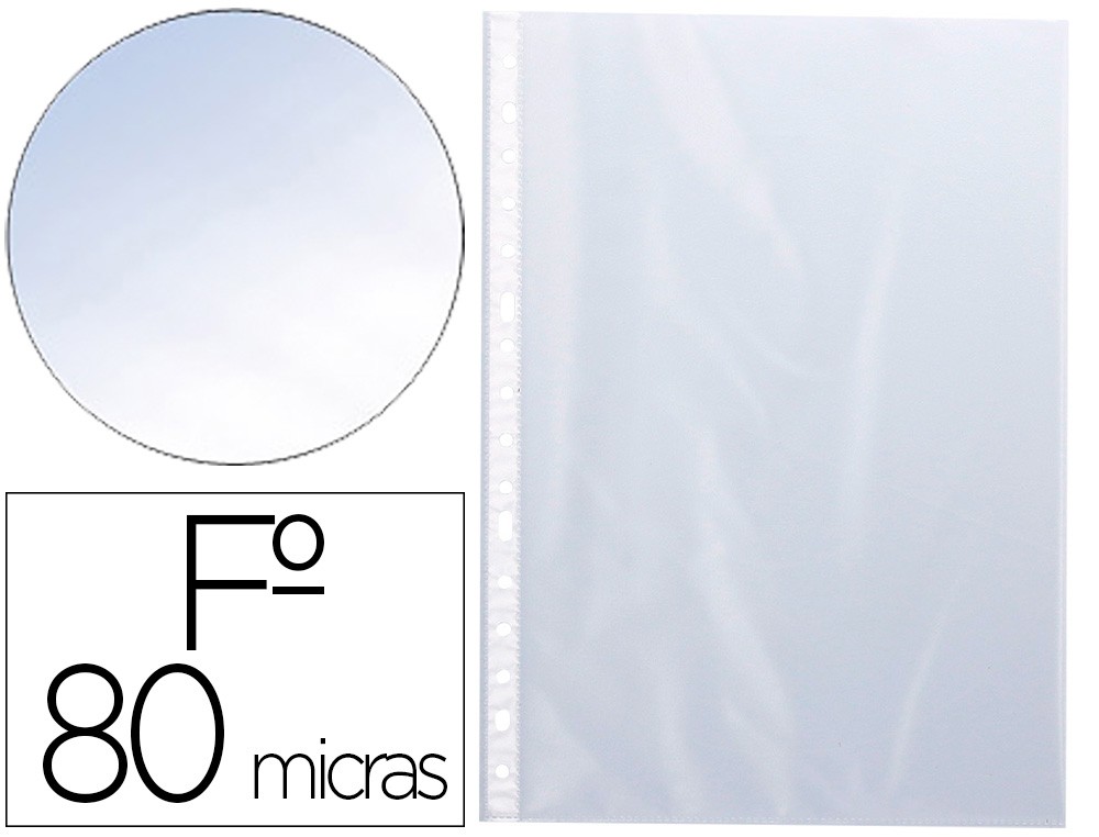 Para protección y archivo de documentos. Fabricada en polipropileno transparente no adherente piel de naranja. Lomo blanco. 16 taladros. Grosor: 80 micras. Tamaño folio.