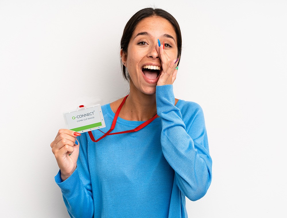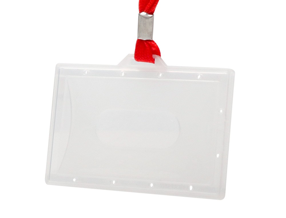 Identificador q-connect kf03303 con cordon plano rojo y apertura lateral 94x60 mm