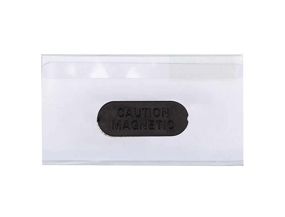 Identificadores Q-Connect con clip magnético. Placas identificativas de PVC flexible que se adaptan a todas las acasiones. Con fundas transparentes para proteger las tarjetas identificativas y mostrarlas con claridad, y clip magnético en la parte posterior para sujetarlas a la ropa sin dañar el tejido. Tamaño: 40x75 mm.