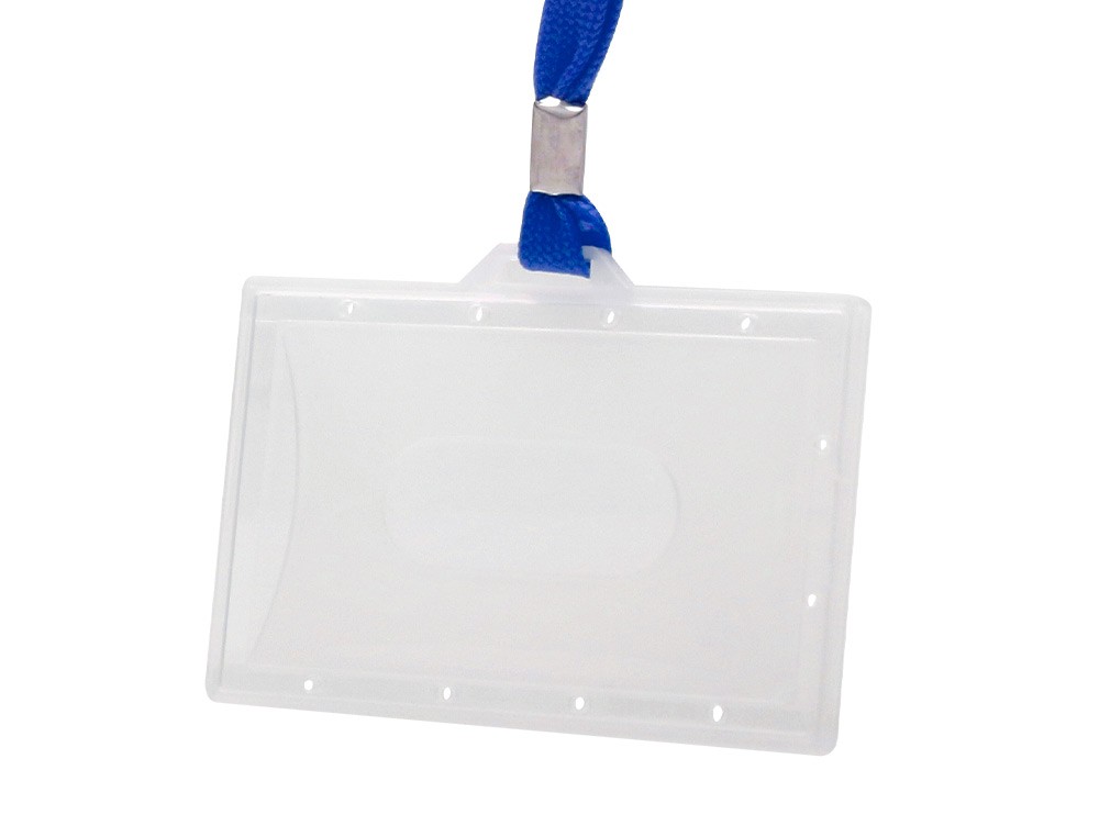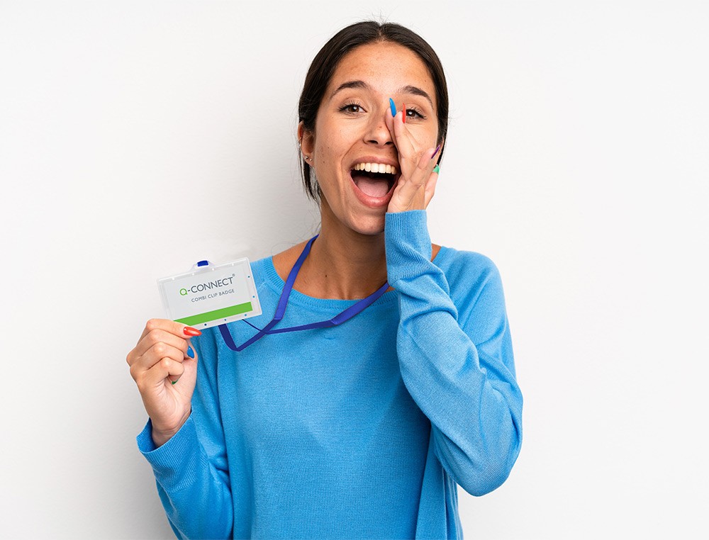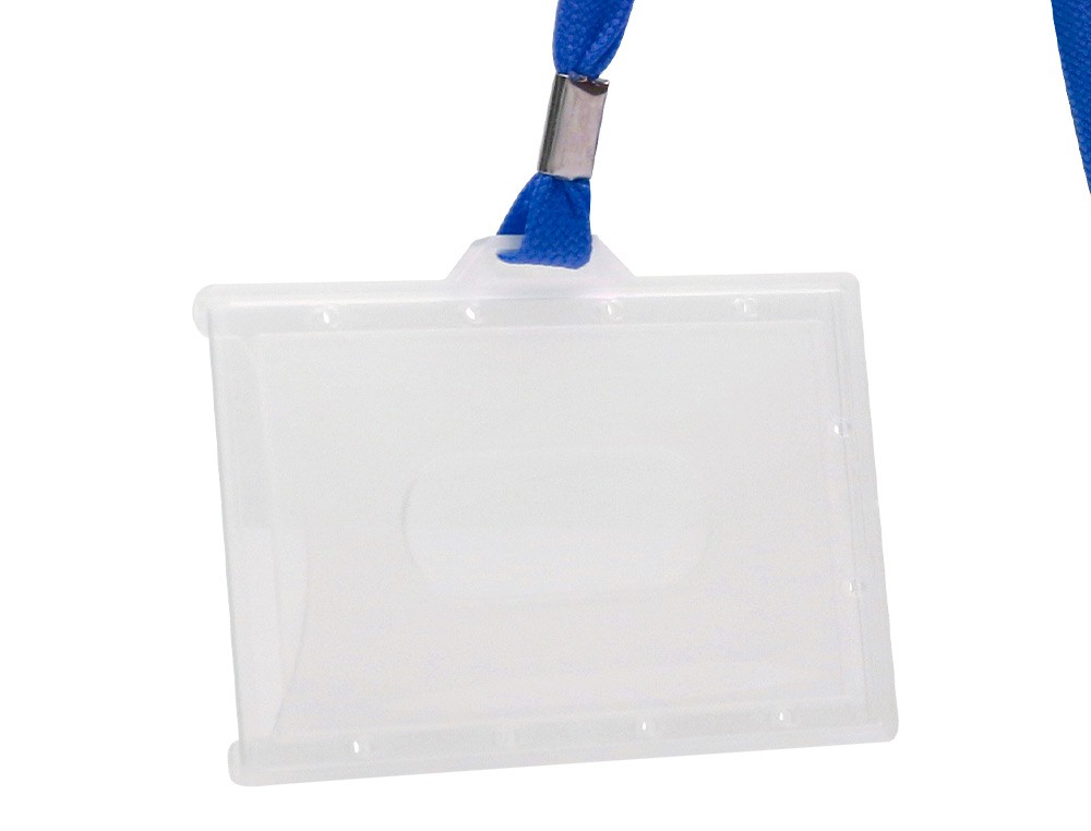 Identificador q-connect kf17112 con cordon plano azul y apertura lateral 94x60 mm