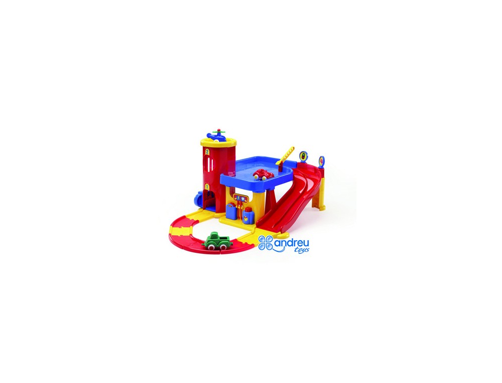 Juego vikingtoys garaje dos pisos + 3 vehiculos + pistas 19x42x39 cm