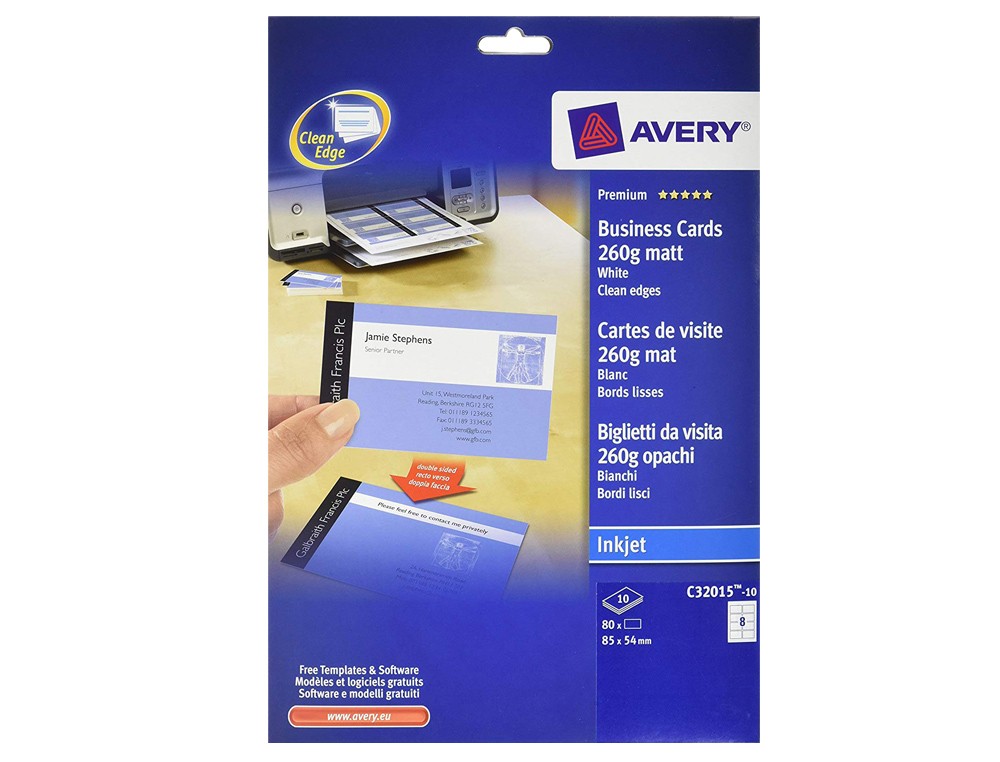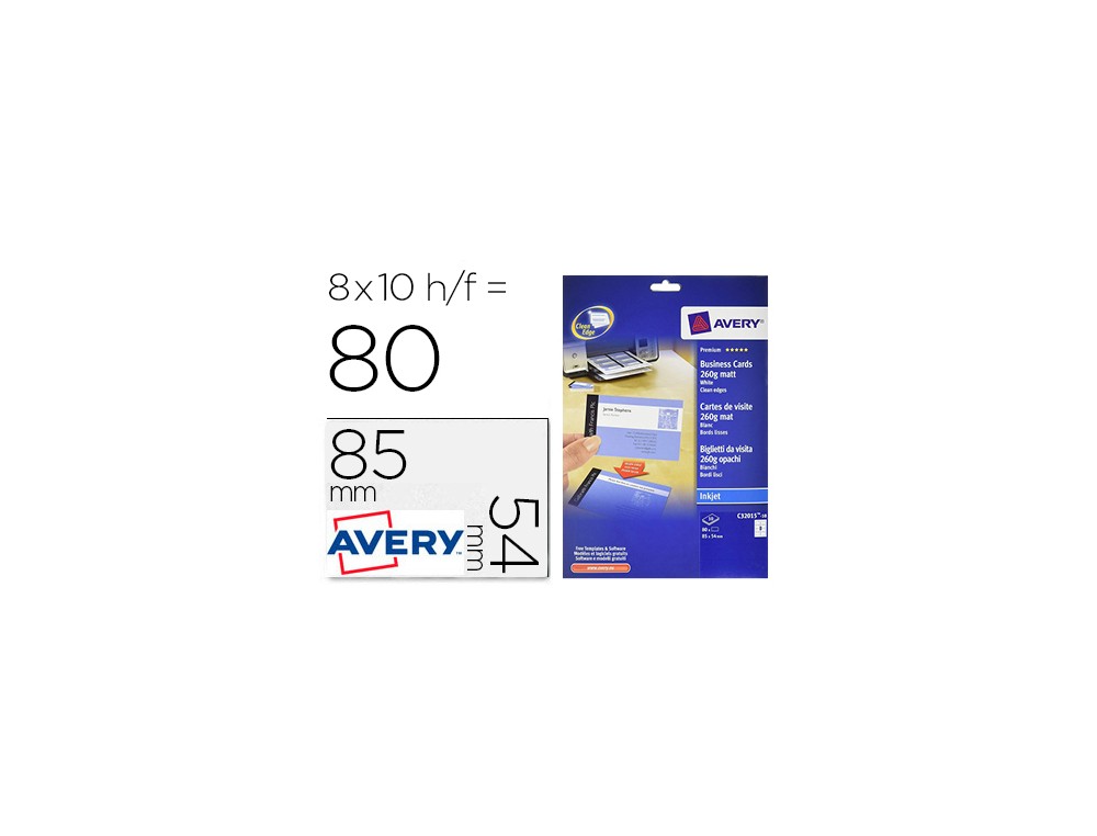 Tarjeta de visita avery blanca mate 85x54 mm 260 gr imprimible doble cara para ink-jet pack de 80 unidades
