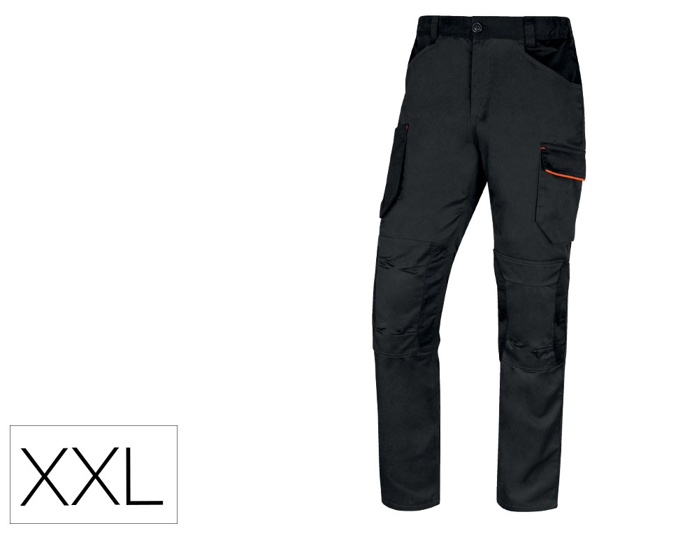 Pantalón corte adjusted Delta Plus. Prenda stretch. Cintura elástica en los laterales. Portapase identificador desmontable incluido. Triple costura.Rodillas preformadas. Bolsillos para rodilleras. 7 bolsillos, uno para me tro. Composición: 63% poliéster, 34% algodón, 3% elastano. Talla XXL. Color azul marino/naranja. HOMOLOGADO EN NORMA EN 14404: TIPO 2 NIVEL 1 EN ISO13688.