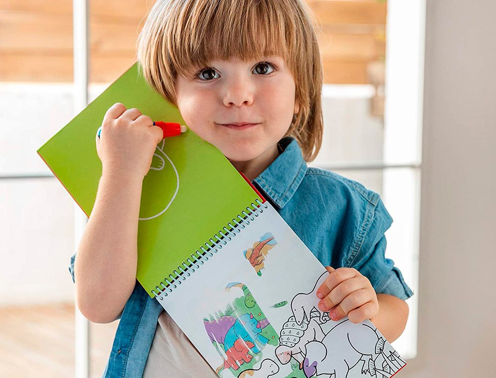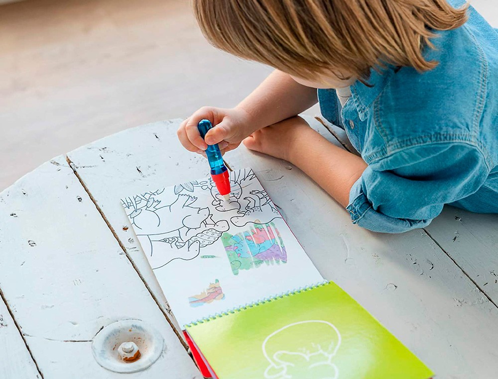 Libreta para colorear con distintas imagenes de simpáticos animalitos. Los6 dibujos son reutilizables para colorear con rotuladores de agua. Rellen a el rotulador con agua y úsalo para descubrir los dibujos ocultos. Los colores aparecen como por arte de magia, una y otra vez. Ideal para llevar de viaje.