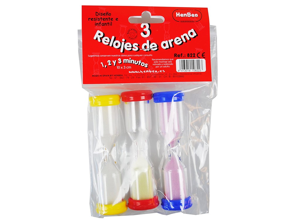 Reloj de arena henbea plastico resistente marca de 1 a 3 minutos 10x3 cm