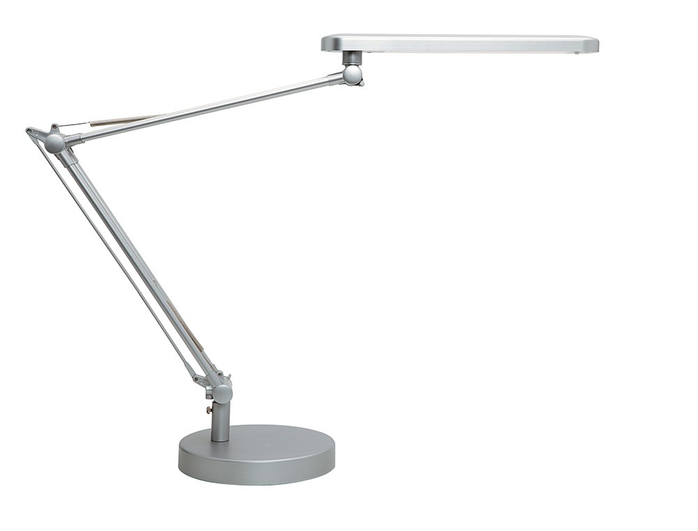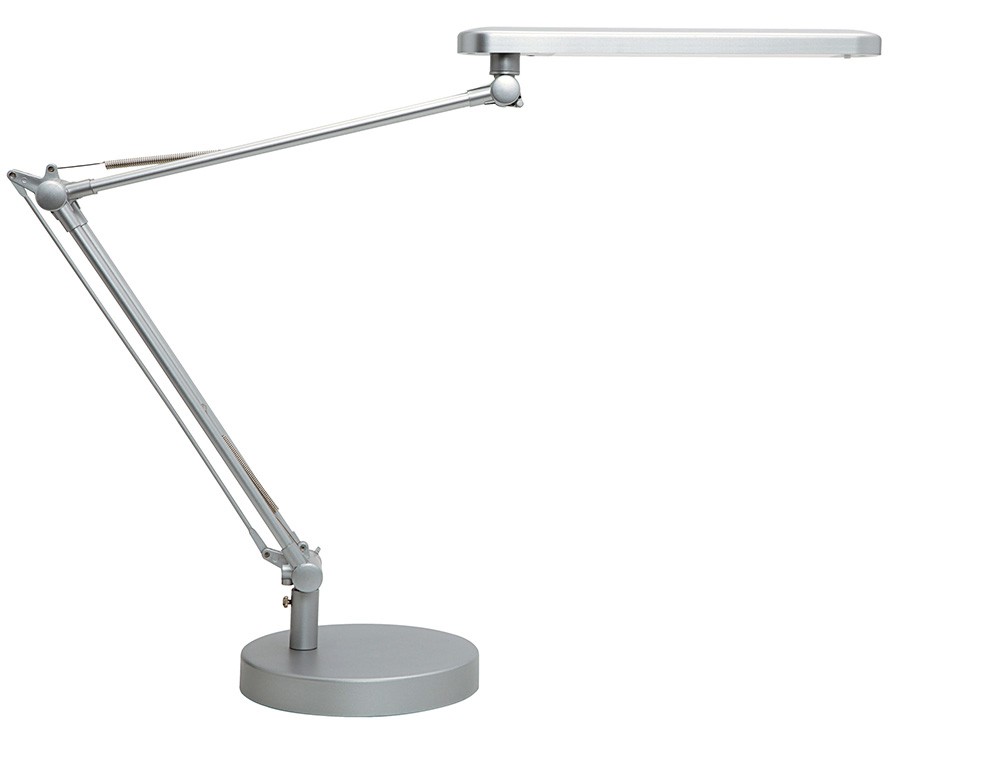 Lampara de escritorio unilux mambo led 5,6w doble brazo articulado abs y aluminio gris metalizado base 19 cm