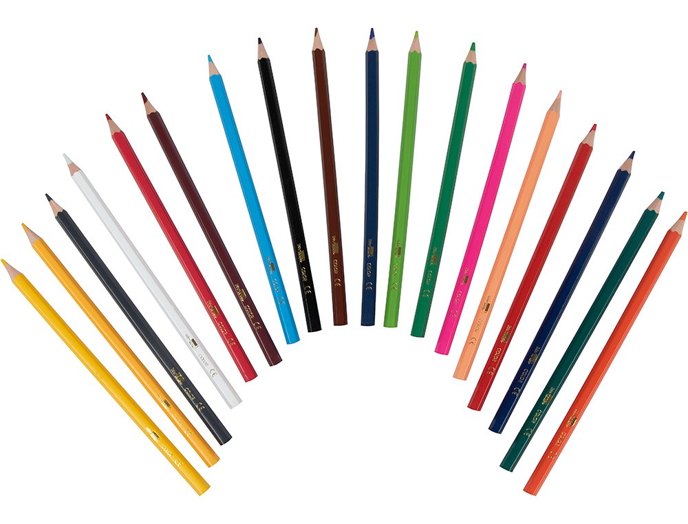 Colores intensos. Ideales para escolares. Mina extrarresistente. Escritura suave y uniforme. Altura del lápiz: 174,5 mm. Diámetro del lápiz: 5,6 mm. Diámetro de la mina: 2,9 mm. Caja de cartón plastificada.