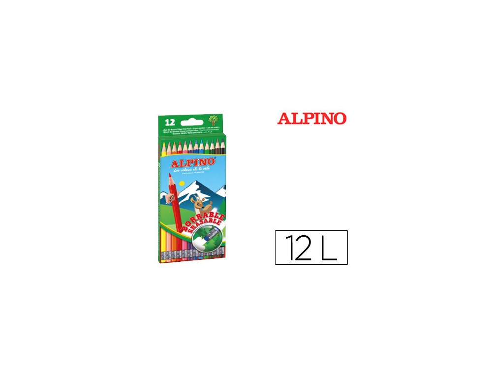 Lapices de colores alpino borrable con goma caja de 12 colores surtidos