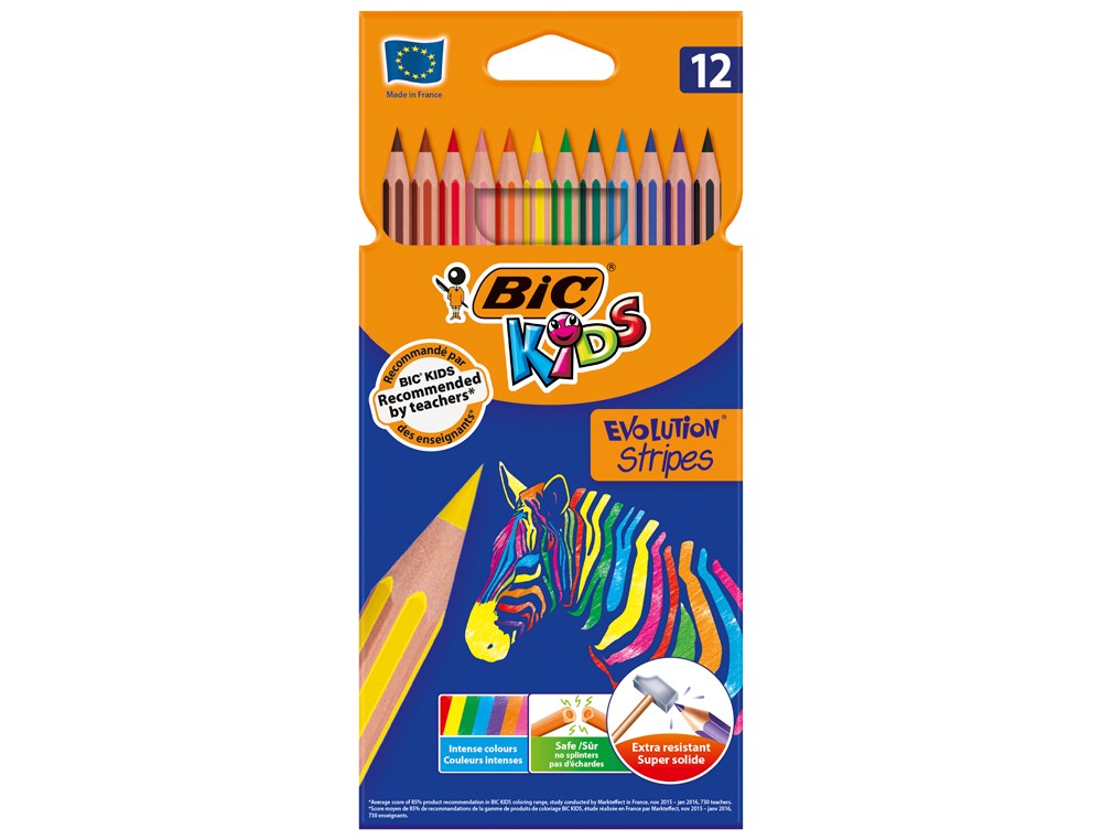 Lapices de colores bic evolution stripes caja de 12 colores surtidos