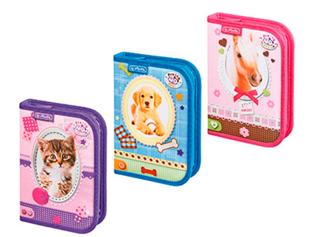 Plumier escolar herlitz con cremallera 19 piezas pretty pets 203x140x35 mm