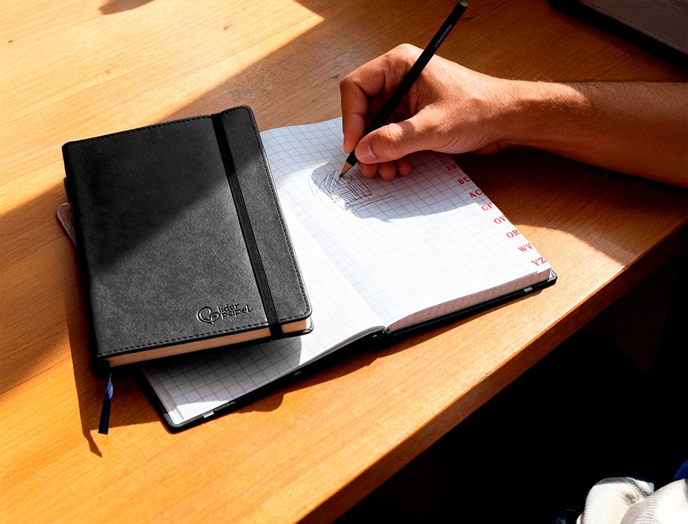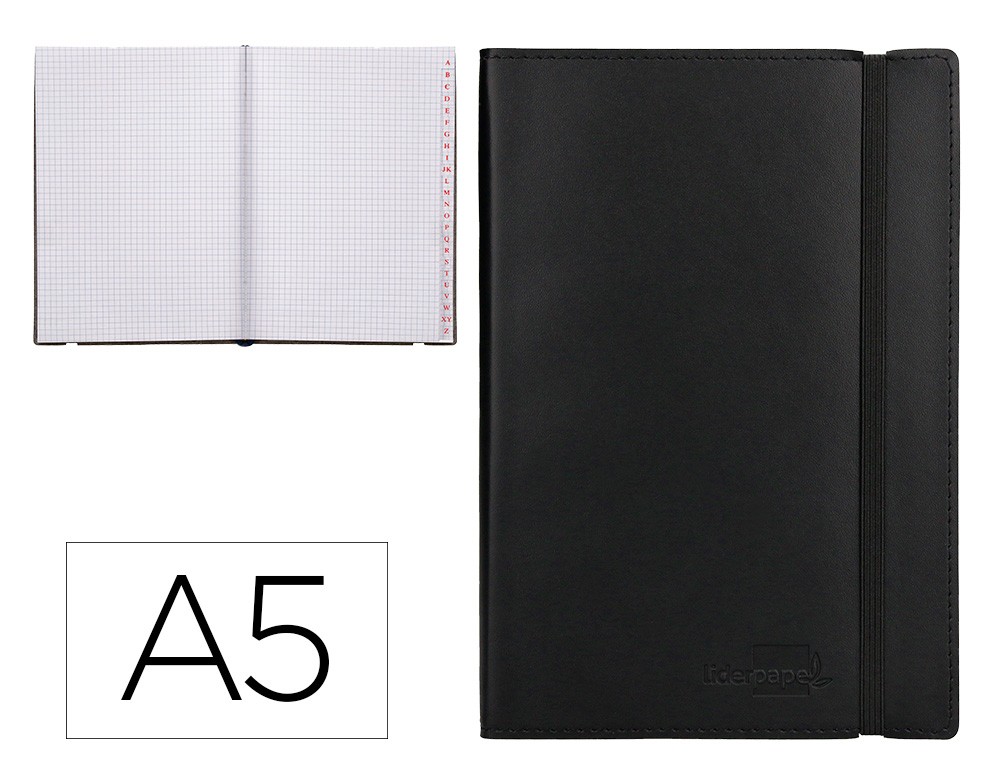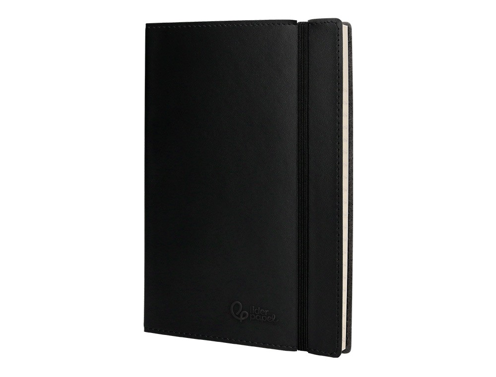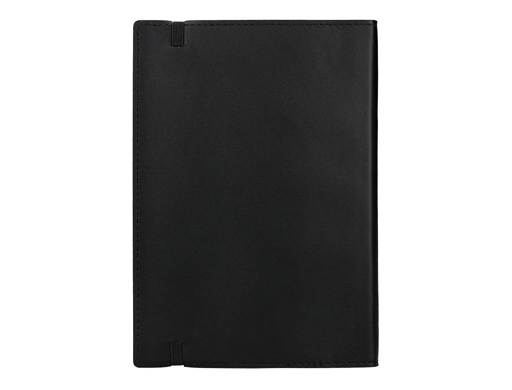 Cuaderno encolado con cierre de gomillas. Perfecta para llevar encima, tomar apuntes, hacer bocetos, plasmar cualquier idea. Tapa símil-piel flexible de 1,75 mm de espesor. 120 hojas. 70 g/m². Sin margen.