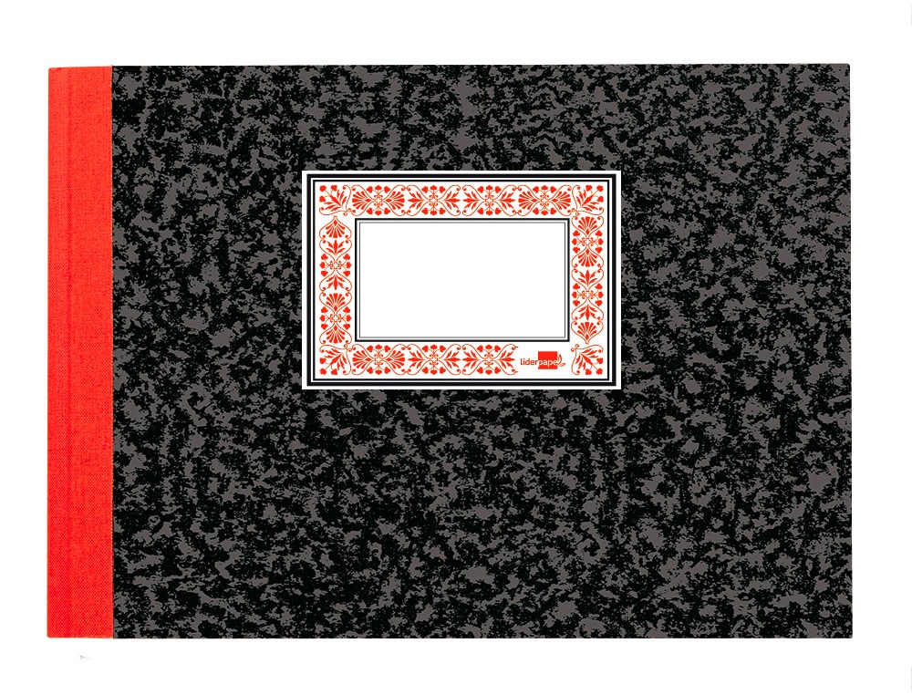 Cuaderno de cartón forrado con papel jaspeado y lomo de tela engomado. Papel de 70 g/m². 100 hojas.