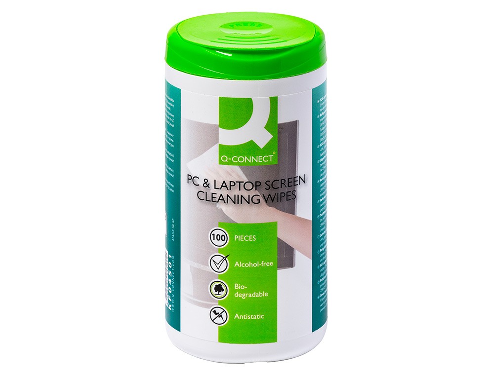 Toallitas q-connect limpiadora de pantallas y teclados bote de 100 unidades