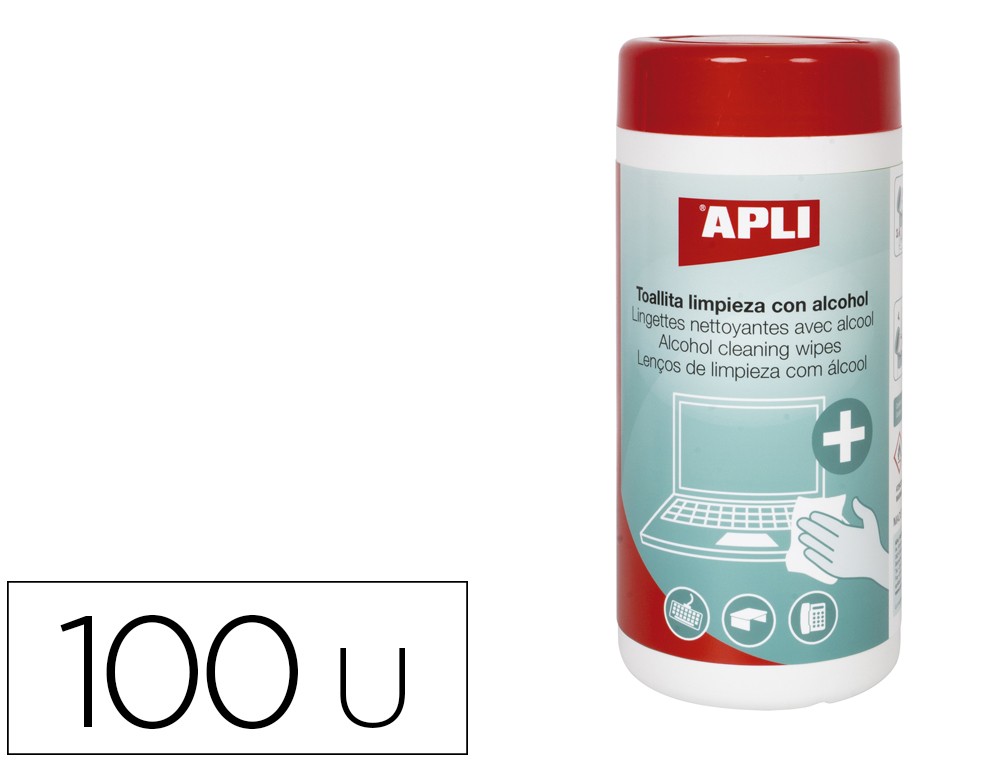 Toallita limpieza apli con alcohol bote de 100 unidades