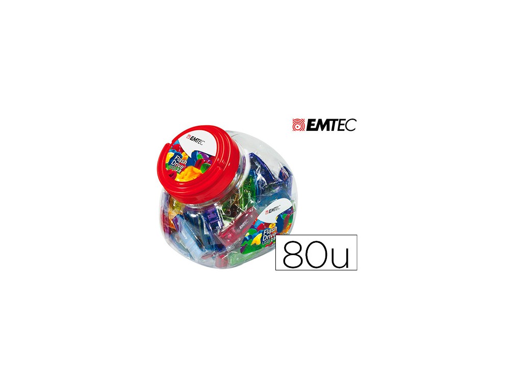 Memoria usb emtec flash 32gb 2.0 bombonera 80 unidades colores surtidos