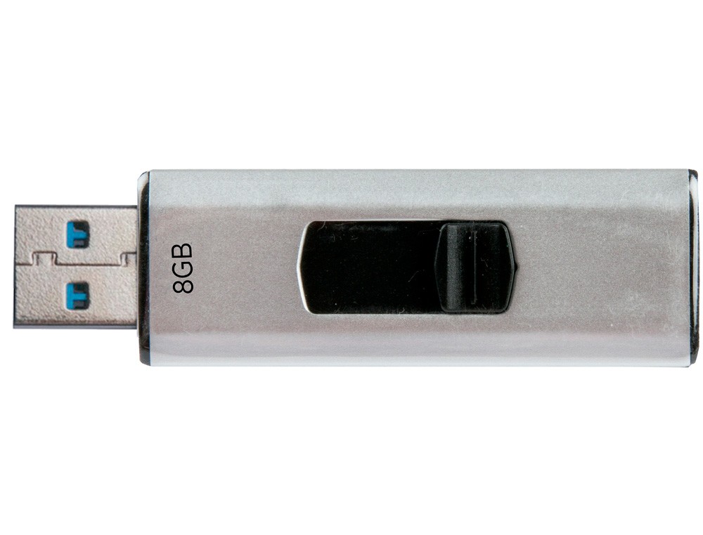 Memoria Flash USB con un excelente rendimiento y gran velocidad. Práctico formato retráctil: el conector USB se oculta en el cuerpo compacto, para quedar totalmente protegido sin necesidad de una tapa. Interfaz SuperSpeed 3.0, compatible con USB 2.0. Color plateado. Cuenta con un orificio para colocar un cordón. Medidas: 55 x 20 x 7 mm.
